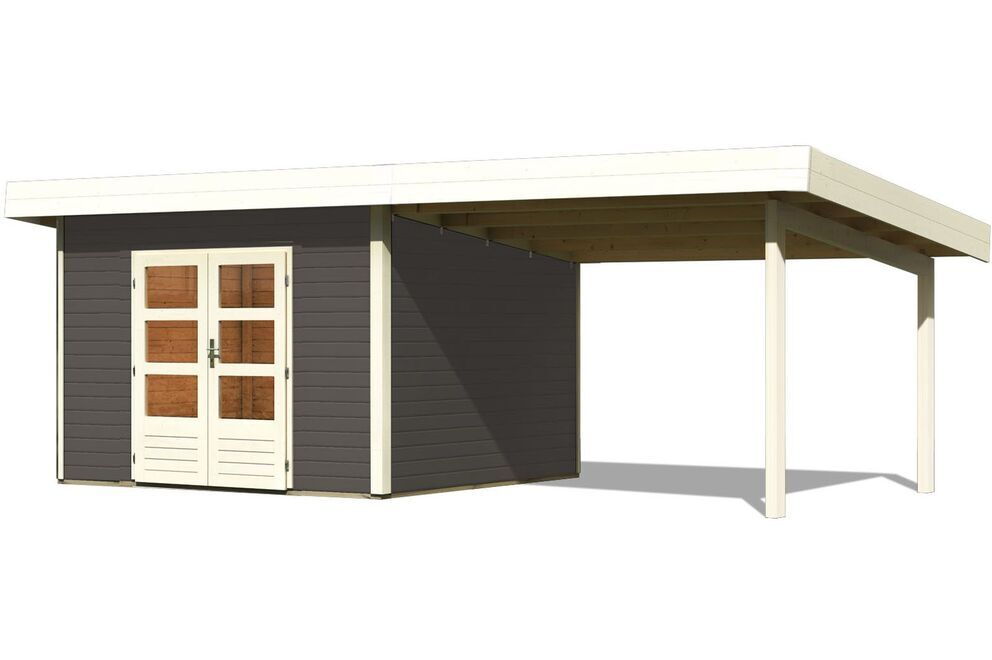 Das Gartenhaus Northeim 3 in naturbelassen, opalgrau oder terragrau aus nordischer Fichte von KARIBU wird aus 38 mm Wandbrettern im Steck-/Schraubsystem gefertigt und kann somit rasch und einfach aufgebaut werden. Dabei ist es dank der extra breiten Wandbretter mit Doppelnut und -feder extrem stabil. Das praktische Pultdach aus Massivholzdach sorgt dafür, dass das Gartenhaus schnell und wirkungsvoll gegen Witterungseinflüsse geschützt ist. Der vordere Dachüberstand ist mit ca. 31 cm ausreichend groß dimensioniert, um den Eingangsbereich wirkungsvoll zu schützen. Das Haus hat eine Grundfläche von ca. 9,3 m² und ca. 12,9 m³ umbauten Raum. Dank der Seitenhöhe von ca. 189 cm und einer Firsthöhe von ca. 238 cm sorgt das Gartenhaus innen viel Platz. Kesseldruckimprägnierte Bodenbalken sorgen für optimalen Schutz gegen aufsteigende Feuchtigkeit. Durch die Positionierung unter dem Gartenhaus schützen die Bodenbalken effektiv vor Staunässe und Spritzwasser. Das Gartenhaus wird mit der, praktischerweise schon vormontierten Tür, im stabilen Massivholzrahmen ausgeliefert und bietet dank der großen Öffnung bequemen Zutritt in das Haus. Nebenbei bietet sie effektiven Schutz vor Diebstahl. Gleichzeitig lassen die großzügigen Lichtausschnitte im jeweiligen Türflügel ausreichend Tageslicht in das Gartenhaus einströmen.