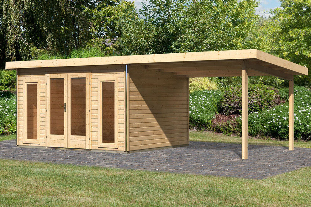 Vielseitig erweiterbar Das zahlreiche Zubehör von KARIBU sowie die Anbauten lassen der Kreativität freien Lauf. Sowohl beim stilvollen Einrichten des Innenbereichs als auch beim Dekorieren der Fassaden. |