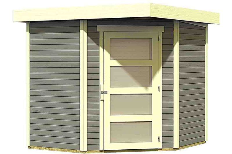 Das Gartenhaus Schwandorf 3 in naturbelassen, terragrau oder seidengrau aus nordischer Fichte von KARIBU wird aus 19 mm Wandbrettern im Steck-/Schraubsystem gefertigt und kann somit rasch und einfach aufgebaut werden. Das praktische Pultdach aus Dachplatte sorgt dafür, dass das Gartenhaus schnell und wirkungsvoll gegen Witterungseinflüsse geschützt ist. Das Haus hat eine Grundfläche von ca. 4,45 m² und ca. 8,1 m³ umbauten Raum. Dank der Seitenhöhe von ca. 202 cm und einer Firsthöhe von ca. 218 cm sorgt das Haus innen für viel Platz. Kesseldruckimprägnierte Bodenbalken sorgen für optimalen Schutz gegen aufsteigende Feuchtigkeit. Durch die Positionierung unter dem Gartenhaus schützen die Bodenbalken effektiv vor Staunässe und Spritzwasser. Das Gartenhaus wird mit der, praktischerweise schon vormontierten Tür, im stabilen Massivholzrahmen ausgeliefert und bietet dank der großen Öffnung bequemen Zutritt in das Haus. Nebenbei bietet sie effektiven Schutz vor Diebstahl. Gleichzeitig lassen die großzügigen Lichtausschnitte im jeweiligen Türflügel ausreichend Tageslicht in das Gartenhaus einströmen.