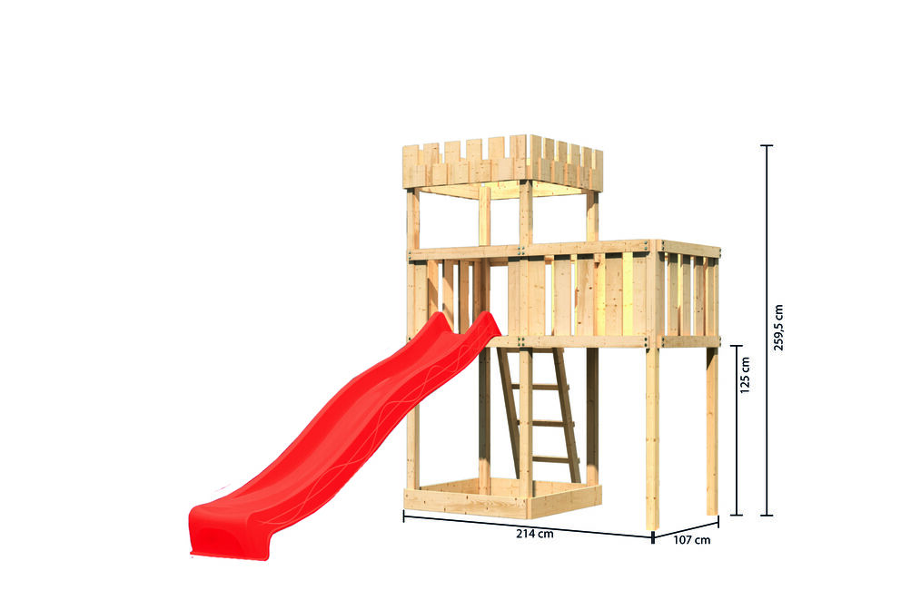 1x KARIBU Löwenherz Ritterburg, nordische Fichte, wahlweise mit Rutsche in verschiedenen Farben
