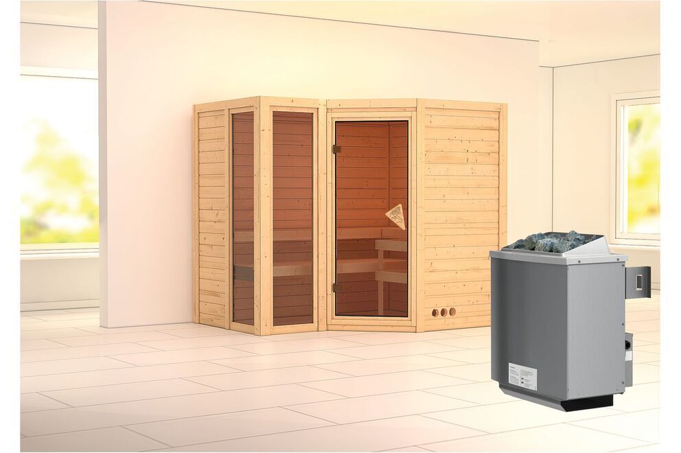 Dieses Modell ist in vielen unterschiedlichen Ausführungen erhältlich, sodass Sie sich Ihre Wunschsauna individuell zusammenstellen können. Ob mit oder ohne Kranz, ob externe oder interne Steuerung, ob Standard- oder Biokombiofen - die verfügbaren Extras könnten umfangreicher nicht sein. Sehen Sie sich außerdem auch das zahlreiche Sauna-Zubehör in der entsprechenden Rubrik an.