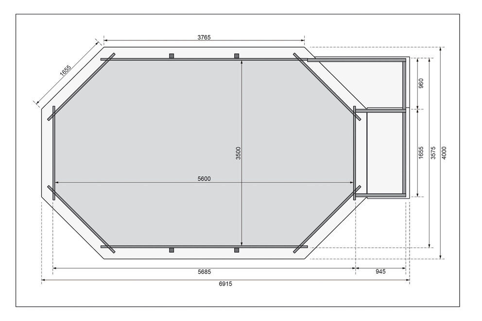 Der hochwertige Massivholzpool Modell 4 Classic KDI von KARIBU aus witterungsbeständigen und kesseldruckimprägnierten Blockbohlen mit einer Stärke von ca. 38 mm sorgt für Freibadfeeling in Ihrem Garten. Machen Sie sich unabhängig von überfüllten Einrichtungen oder langen Schlangen am Kiosk. Mit einer großen Wassertiefe von ca. 111 cm ist hier müheloses und bequemes Schwimmen möglich. Insgesamt warten hier ca. 19 m³ Wasserinhalt darauf, von Ihnen erobert zu werden. Die Großzügigkeit des Pools wird unterstrichen durch eine Diagonale von ca. 633 cm. Daraus entsteht ein Innenmaß von ca. 560 x 350 cm bei einem Außenmaß von ca. 569 x 358 cm stehen für sich. Eine hochwertige Poolfolie mit einer Stärke von ca. 0,6 mm ist im Lieferumfang enthalten. Diese Poolfolie wird bei den KARIBU Pools in eine praktische umlaufende Einhängebiese eingeklipst. Somit wird das Risiko der Faltenbildung minimiert und ein Austausch der Folie im Falle einer Beschädigung wird extrem vereinfacht. Diese Bauweise steht qualitativ deutlich über einer recht einfachen Vernagelung von Poolfolien, wie es andere Hersteller zum Teil tun. Unterhalb der Poolfolie wird ein Unterlegvlies mit einer Stärke von ca. 400 g/m² ausgelegt, welches auch mitgeliefert wird. Ebenfalls im Lieferumfang enthalten ist die hochwertige Edelstahl-Einhängeleiter und Bolzleiter für die Außenseite. Das ca. 26 mm dicke Deck an der Oberseite des Pools als Handlauf sorgt für einen schönen und harmonischen Abschluss.