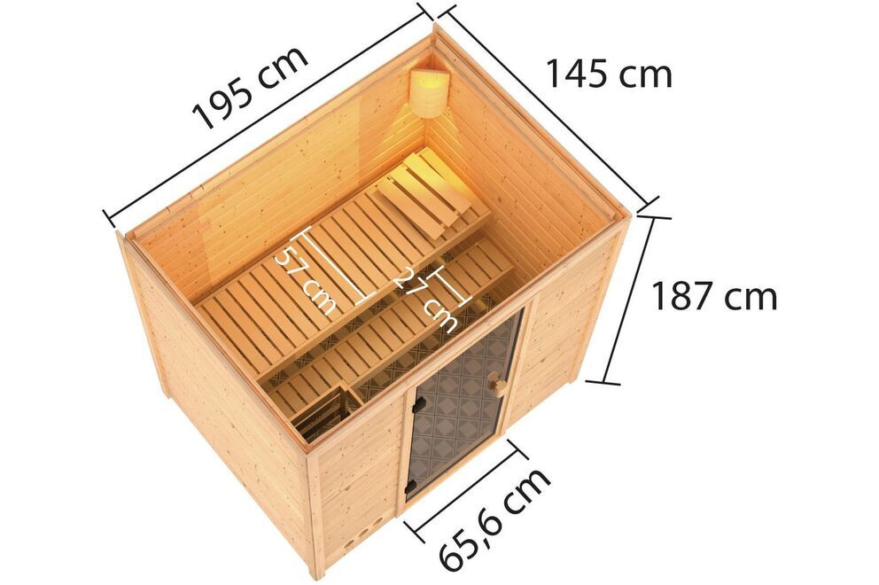 Fronteinstieg-Massivholzsauna inklusive zwei Liegen und Ofenschutzgitter
