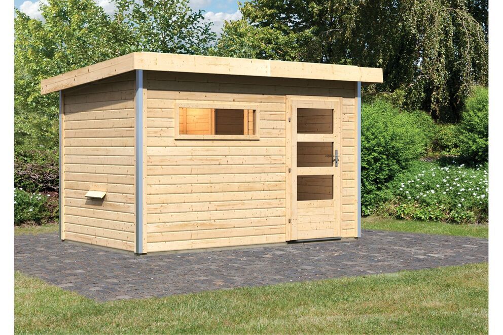 Saunahaus Skrollan 1 von KARIBU mit diversen Tür-, Ofen- und Steuerungsoptionen