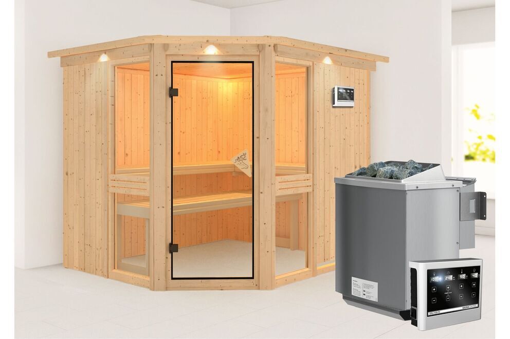 Dieses Modell ist in vielen unterschiedlichen Ausführungen erhältlich, sodass Sie sich Ihre Wunschsauna individuell zusammenstellen können. Ob mit oder ohne Kranz, ob externe oder interne Steuerung, ob Standard- oder Biokombiofen - die verfügbaren Extras könnten umfangreicher nicht sein. Sehen Sie sich außerdem auch das zahlreiche Sauna-Zubehör in der entsprechenden Rubrik an.