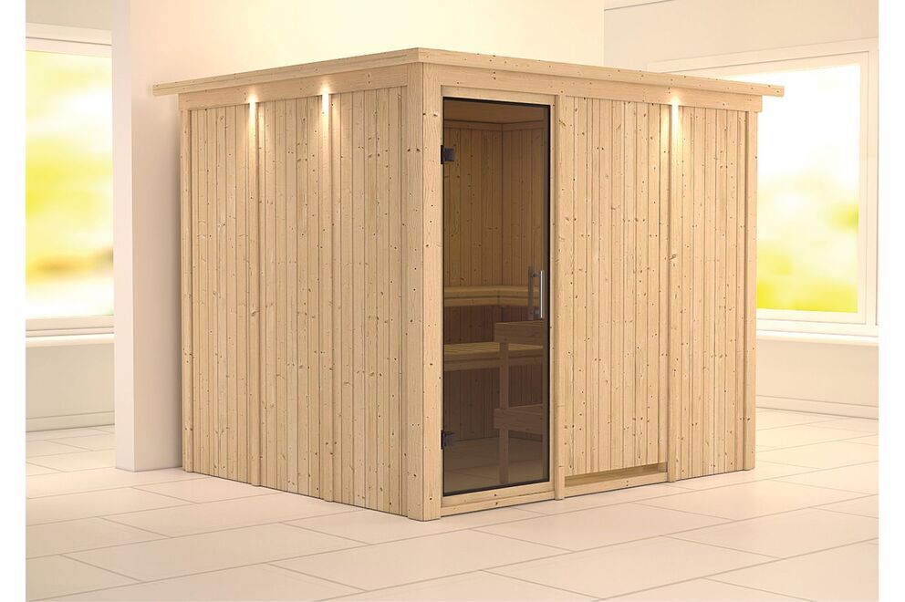 Dieses Modell ist in vielen unterschiedlichen Ausführungen erhältlich, sodass Sie sich Ihre Wunschsauna individuell zusammenstellen können. Ob mit oder ohne Kranz, ob externe oder interne Steuerung, ob Standard- oder Biokombiofen - die verfügbaren Extras könnten umfangreicher nicht sein. Sehen Sie sich außerdem auch das zahlreiche Sauna-Zubehör in der entsprechenden Rubrik an.