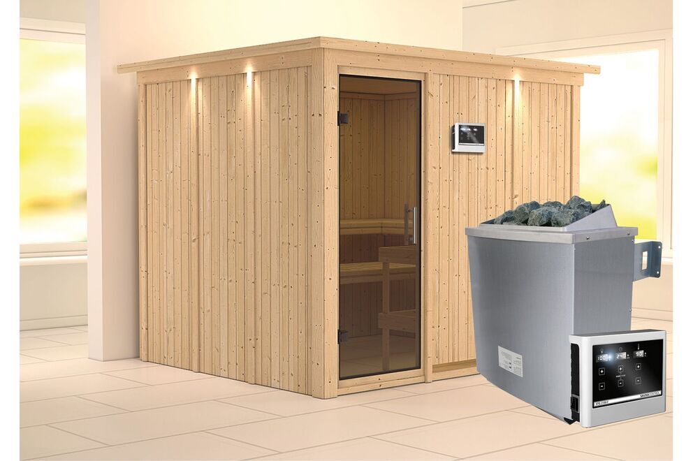 Dieses Modell ist in vielen unterschiedlichen Ausführungen erhältlich, sodass Sie sich Ihre Wunschsauna individuell zusammenstellen können. Ob mit oder ohne Kranz, ob externe oder interne Steuerung, ob Standard- oder Biokombiofen - die verfügbaren Extras könnten umfangreicher nicht sein. Sehen Sie sich außerdem auch das zahlreiche Sauna-Zubehör in der entsprechenden Rubrik an.