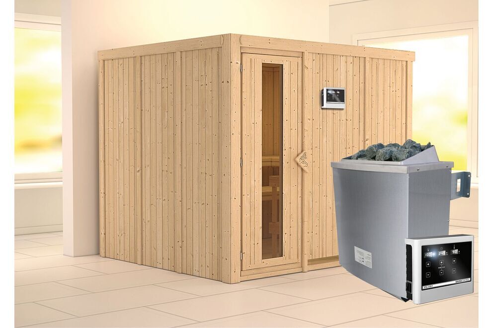 Dieses Modell ist in vielen unterschiedlichen Ausführungen erhältlich, sodass Sie sich Ihre Wunschsauna individuell zusammenstellen können. Ob mit oder ohne Kranz, ob externe oder interne Steuerung, ob Standard- oder Biokombiofen - die verfügbaren Extras könnten umfangreicher nicht sein. Sehen Sie sich außerdem auch das zahlreiche Sauna-Zubehör in der entsprechenden Rubrik an.