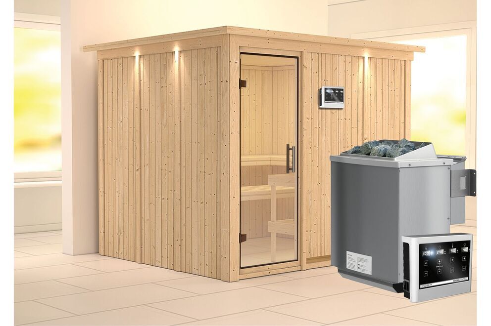 Dieses Modell ist in vielen unterschiedlichen Ausführungen erhältlich, sodass Sie sich Ihre Wunschsauna individuell zusammenstellen können. Ob mit oder ohne Kranz, ob externe oder interne Steuerung, ob Standard- oder Biokombiofen - die verfügbaren Extras könnten umfangreicher nicht sein. Sehen Sie sich außerdem auch das zahlreiche Sauna-Zubehör in der entsprechenden Rubrik an.