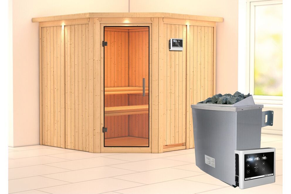 Dieses Modell ist in vielen unterschiedlichen Ausführungen erhältlich, sodass Sie sich Ihre Wunschsauna individuell zusammenstellen können. Ob mit oder ohne Kranz, ob externe oder interne Steuerung, ob Standard- oder Biokombiofen - die verfügbaren Extras könnten umfangreicher nicht sein. Sehen Sie sich außerdem auch das zahlreiche Sauna-Zubehör in der entsprechenden Rubrik an.