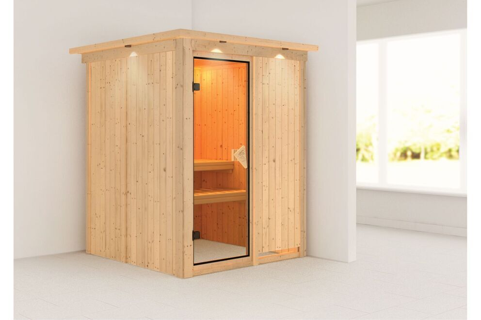 Dieses Modell ist in vielen unterschiedlichen Ausführungen erhältlich, sodass Sie sich Ihre Wunschsauna individuell zusammenstellen können. Ob mit oder ohne Kranz, ob externe oder interne Steuerung, ob Standard- oder Biokombiofen - die verfügbaren Extras könnten umfangreicher nicht sein. Sehen Sie sich außerdem auch das zahlreiche Sauna-Zubehör in der entsprechenden Rubrik an.