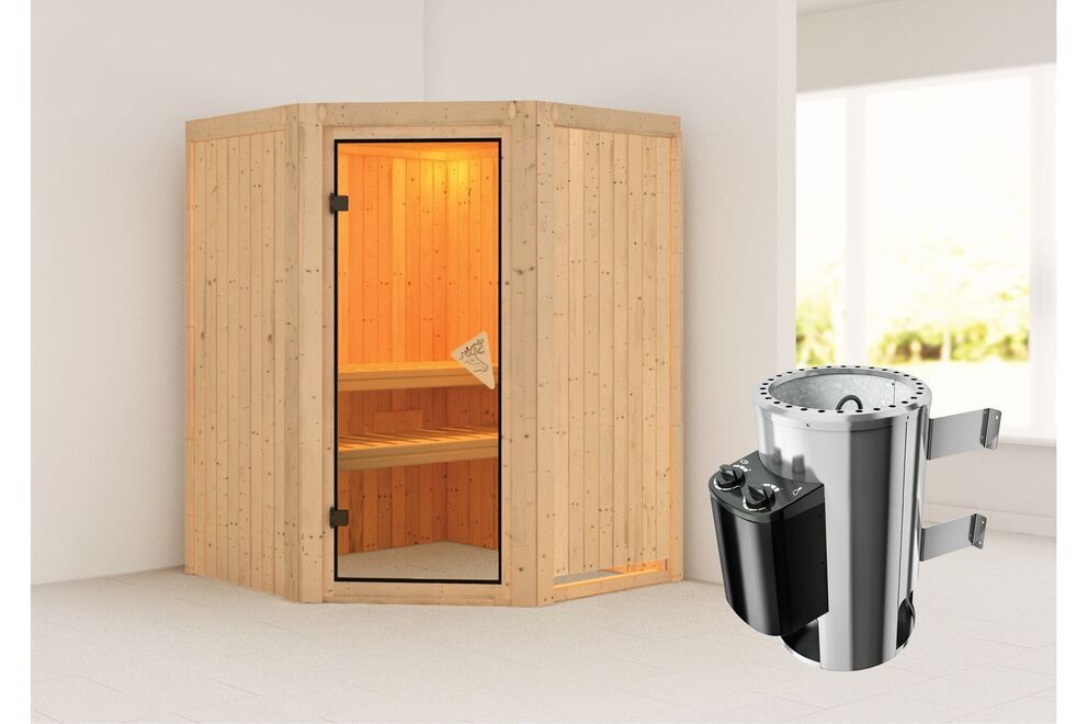 Dieses Modell ist in vielen unterschiedlichen Ausführungen erhältlich, sodass Sie sich Ihre Wunschsauna individuell zusammenstellen können. Ob mit oder ohne Kranz, ob externe oder interne Steuerung, ob Standard- oder Biokombiofen - die verfügbaren Extras könnten umfangreicher nicht sein. Sehen Sie sich außerdem auch das zahlreiche Sauna-Zubehör in der entsprechenden Rubrik an.