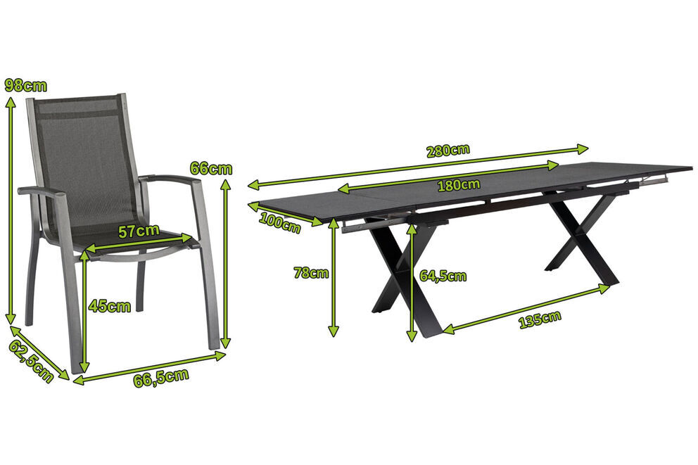 1x OUTFLEXX® Ausziehtisch in anthrazit/schwarz, ca. 180/280 x 100 x 78 cm