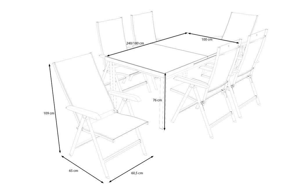Bei dieser Esstischgruppe treffen hochwertige Materialien und Design auf modernste Weise aufeinander. Das Set besteht aus einem innovativen Premium Ausziehtisch der Marke OUTFLEXX mit den Maßen von ca. 180/240 x 100 x 76 cm und 6 Klappstühlen der Marke Kettler aus der Serie 'BasicPlus'.