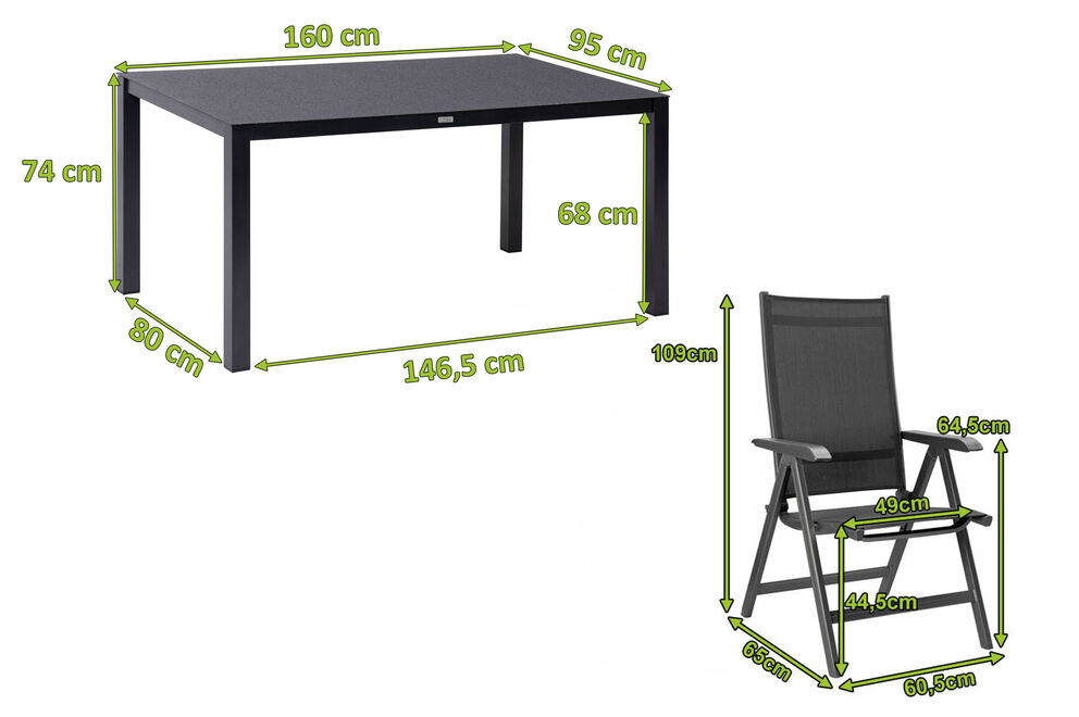 1x OUTFLEXX Esstisch, anthrazit, Alu/Spraystone, ca. 160x95 cm