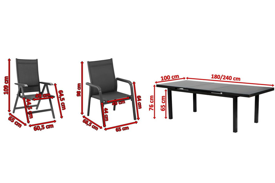 Die Sessel bestechen durch ihre schlichte Optik mit dem pulverbeschichteten Aluminiumrahmen in einem zeitlosen Anthrazit in Kombination mit dem ebenfalls anthrazitfarbenen Textilen-Gewebe. Funktional überzeugen hier sowohl die Hochlehner, als auch die Stapelsessel. Die Rückenlehne der Hochlehner lässt sich kinderleicht mehrfach verstellen und bietet damit einen hervorragenden Sitzkomfort. Dank des pulverbeschichteten Aluminiumgestells sind alle Sessel zudem leicht und einfach zu transportieren. Je nach Bedarf können die Hochlehner zusammengeklappt und die Stapelsessel ineinander gestapelt, und somit platzsparend verstaut werden.