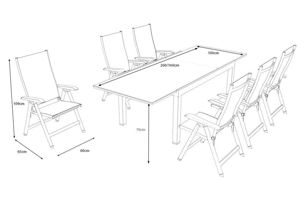 Mit ihrem modernen, klaren Design fügt sich die Essgruppe harmonisch in jede Outdoor-Umgebung ein. Die anthrazitfarbenen Oberflächen wirken zeitlos, stilvoll und lassen sich problemlos mit weiteren Gartenmöbeln oder Dekorationen kombinieren. Das Set wird zerlegt geliefert, lässt sich jedoch mit dem beiliegenden Montagematerial schnell und einfach aufbauen. Durchdachte Details wie komfortable Armlehnen, hochwertige Beschichtungen und pflegeleichte Materialien machen dieses Set zu einer idealen Wahl für anspruchsvolle Outdoor-Liebhaber.