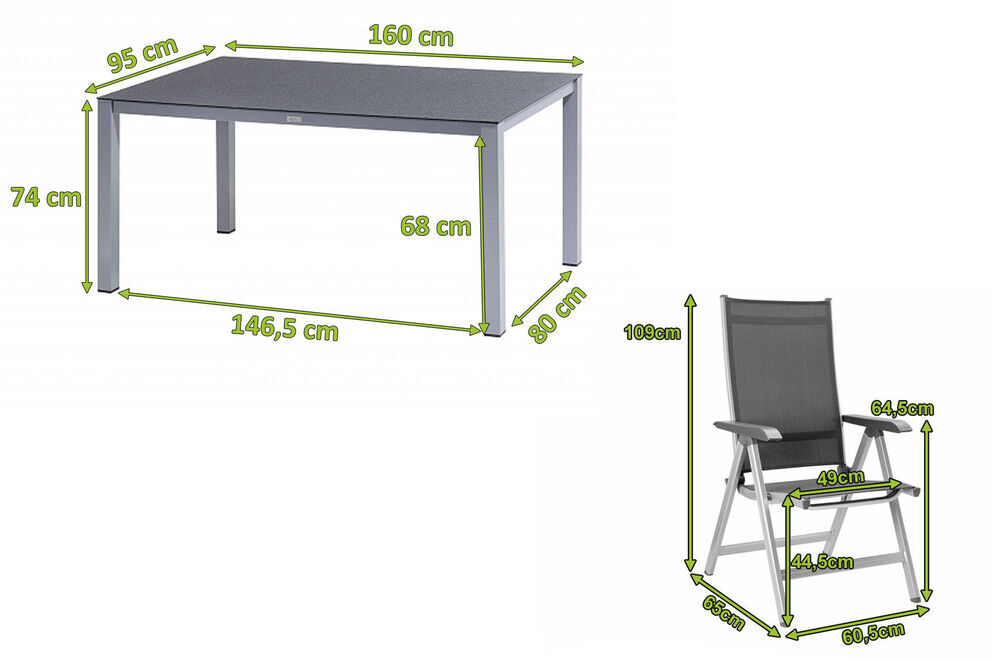 Mit den Klappstühlen aus der BasicPlus Serie bequem durch den Sommer. Mittels Rasterschiene lässt sich der Sessel leicht in 4 verschiedene Positionen bringen - so wird der Komfort eines Liegestuhls direkt integriert. Das solide und formschöne Gestell besteht aus edlem, silberfarbenem Aluminium. Die anthrazitfarbene Sitzfläche wird aus wasserdurchlässigem, hochwertigem Outdoorgewebe gefertigt. Die Sitzfläche nimmt kein Wasser auf und trocknet schnell, so können Sie auch nach einem kleinen Regenschauer rasch wieder Platz nehmen. Das luftige Gewebe ist formstabil und trotzdem sehr bequem und zusätzlich UV- und sonnenölbeständig - insgesamt also der perfekte Begleiter in Ihrem Garten. Dank der leichten Materialien und des Klappmechanismus lässt sich der Stuhl leicht zu handhaben - wenn er nicht benötigt wird können Sie ihn platzsparend verstauen.