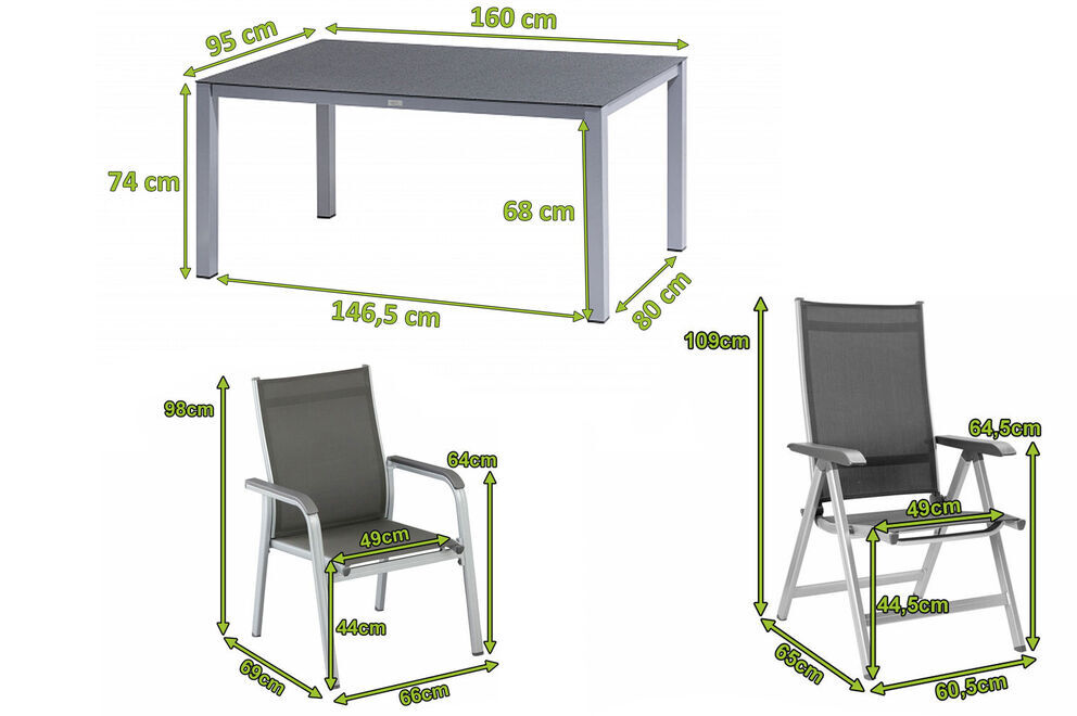 Mit den Klappstühlen aus der BasicPlus Serie bequem durch den Sommer. Mittels Rasterschiene lässt sich der Sessel leicht in 4 verschiedene Positionen bringen - so wird der Komfort eines Liegestuhls direkt integriert. Das solide und formschöne Gestell besteht aus edlem, silberfarbenem Aluminium. Die anthrazitfarbene Sitzfläche wird aus wasserdurchlässigem, hochwertigem Outdoorgewebe gefertigt. Die Sitzfläche nimmt kein Wasser auf und trocknet schnell, so können Sie auch nach einem kleinen Regenschauer rasch wieder Platz nehmen. Das luftige Gewebe ist formstabil und trotzdem sehr bequem und zusätzlich UV- und sonnenölbeständig - insgesamt also der perfekte Begleiter in Ihrem Garten. Dank der leichten Materialien und des Klappmechanismus lässt sich der Stuhl leicht zu handhaben - wenn er nicht benötigt wird können Sie ihn platzsparend verstauen.