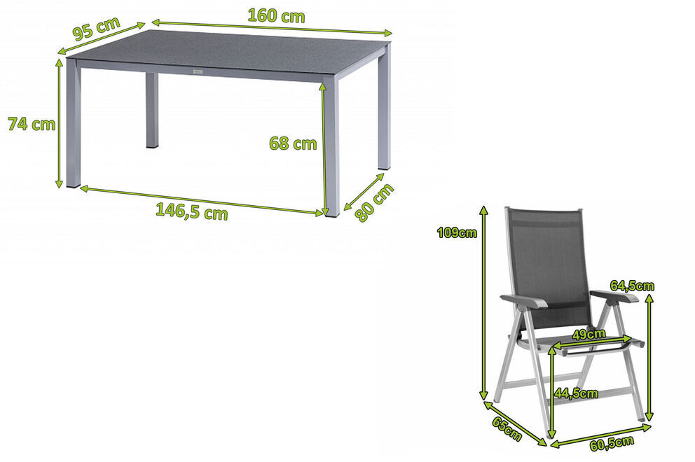 Mit den Klappstühlen aus der BasicPlus Serie bequem durch den Sommer. Mittels Rasterschiene lässt sich der Sessel leicht in 4 verschiedene Positionen bringen - so wird der Komfort eines Liegestuhls direkt integriert. Das solide und formschöne Gestell besteht aus edlem, silberfarbenem Aluminium. Die anthrazitfarbene Sitzfläche wird aus wasserdurchlässigem, hochwertigem Outdoorgewebe gefertigt. Die Sitzfläche nimmt kein Wasser auf und trocknet schnell, so können Sie auch nach einem kleinen Regenschauer rasch wieder Platz nehmen. Das luftige Gewebe ist formstabil und trotzdem sehr bequem und zusätzlich UV- und sonnenölbeständig - insgesamt also der perfekte Begleiter in Ihrem Garten. Dank der leichten Materialien und des Klappmechanismus lässt sich der Stuhl leicht zu handhaben - wenn er nicht benötigt wird können Sie ihn platzsparend verstauen.
