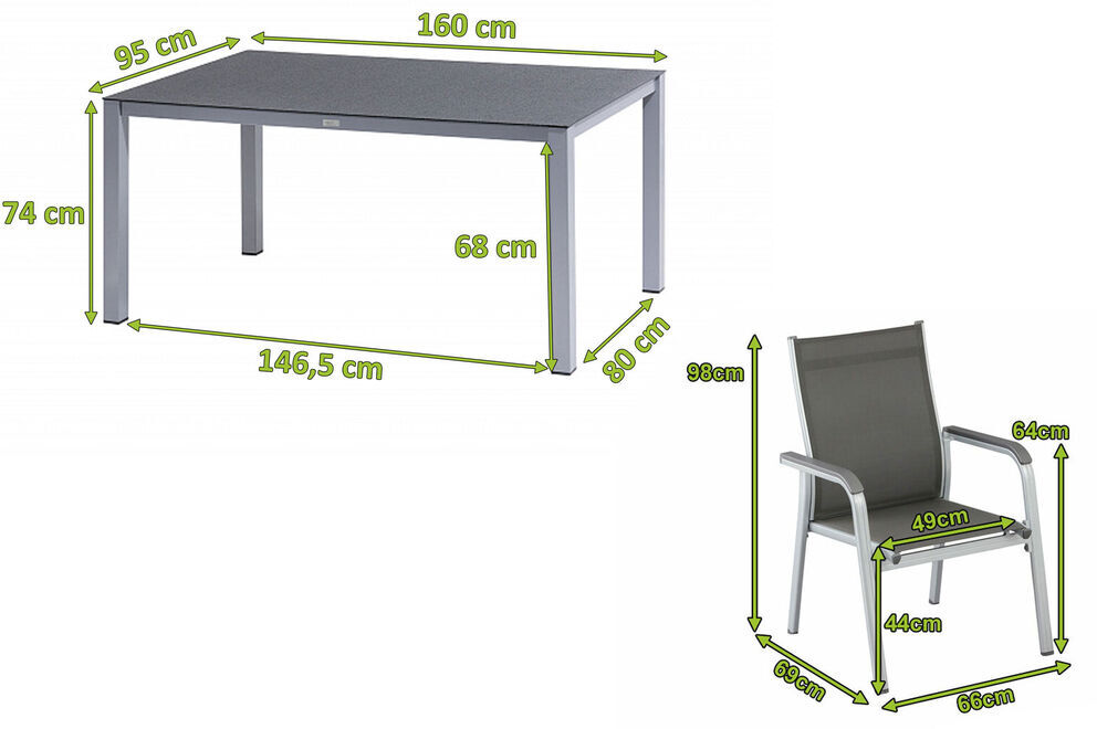 1x OUTFLEXX Esstisch, silber/anthrazit, Alu/Spraystone, ca. 160x95 cm