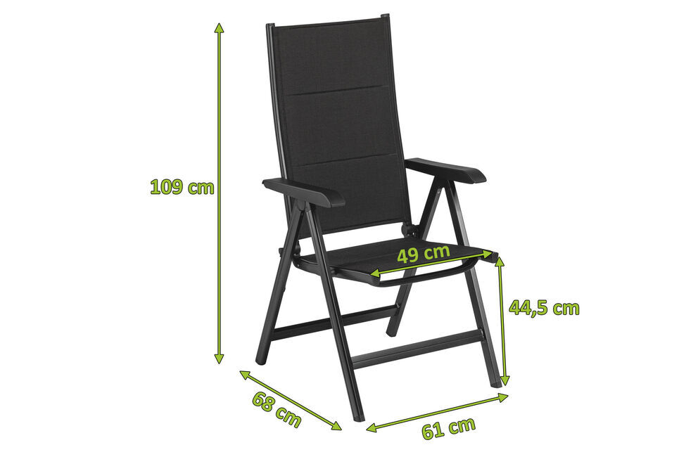 Mit dem Multipositionssessel aus der BasicPlus Padded Serie bequem durch den Sommer. Mittels Rasterschiene lässt sich der Sessel leicht in 4 verschiedene Positionen bringen - so wird der Komfort eines Liegestuhls direkt integriert. Das solide und formschöne Gestell besteht aus edlem, anthrazitfarbenen Aluminium. Das witterungsbeständige Material ist durch seine Flexibilität und seine zusätzliche Polsterung (padded) auch ohne Auflagen sehr bequem. Das formstabile, anthrazite Gewebe nimmt kein Wasser auf, ist atmungsaktiv, UV-Beständig und trocknet nach einem kurzen Schauer sehr schnell - insgesamt also der perfekte Begleiter in Ihrem Garten. Dank der leichten Materialien und des Klappmechanismus lässt sich der Stuhl leicht zu handhaben - wenn er nicht benötigt wird können Sie ihn platzsparend verstauen.