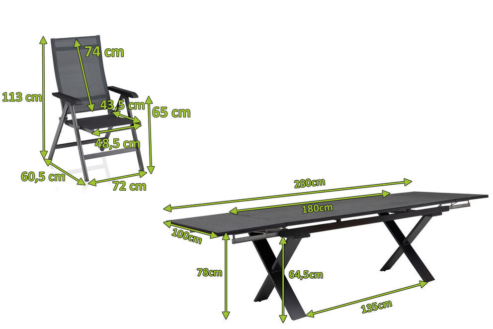 Diese Esstischgarnitur bestehend aus einem OUTFLEXX Ausziehtisch und zehn Basic Plus Premium Multipositionssessel ist die perfekte Wahl für alle, die ein langlebiges und pflegeleichtes Outdoor-Set suchen.