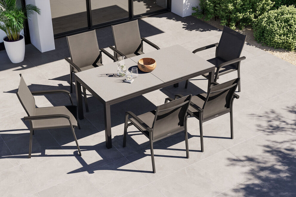 1x SIENA GARDEN Miros Esstisch, anthrazit, ca. 180/240 x 90 cm (508703)