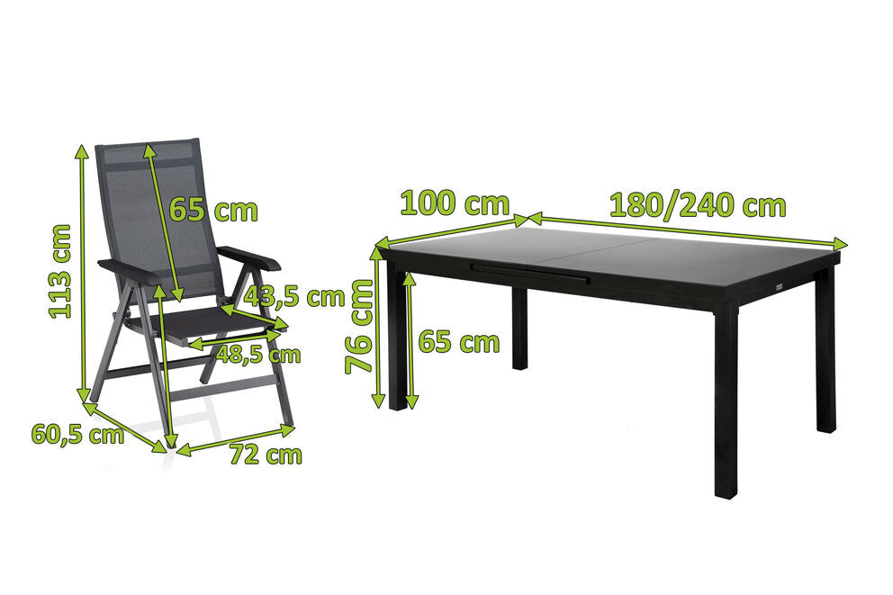Diese Esstischgarnitur bestehend aus einem Outflexx Auszieh-Esstisch und acht Basic Plus Premium Klappstühle ist die perfekte Wahl für alle, die ein langlebiges und pflegeleichtes Outdoor-Set suchen.