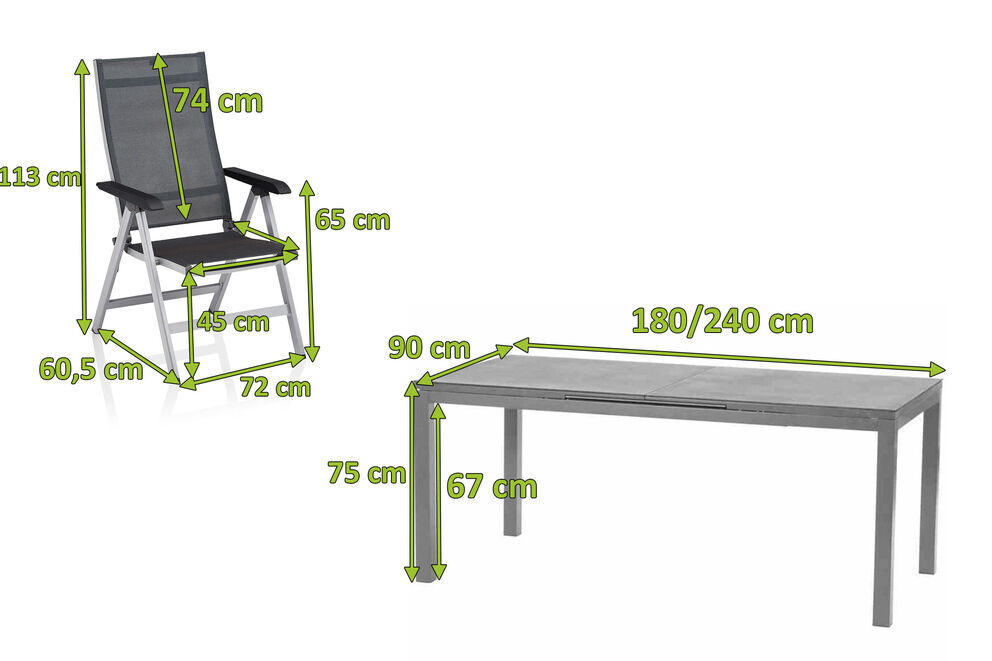 1x SIENA GARDEN Miros Esstisch, silber/anthrazit, ca. 180/240 x 90 cm