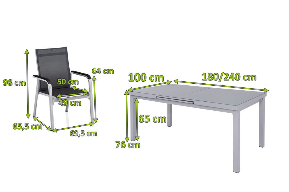 Diese Esstischgarnitur bestehend aus einem Outflexx Auszieh-Esstisch und sechs Basic Plus Premium Stapelsesseln ist die perfekte Wahl für alle, die ein langlebiges und pflegeleichtes Outdoor-Set suchen.
