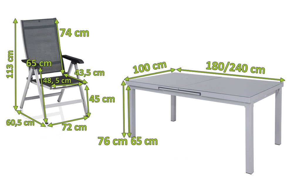 1x OUTFLEXX Ausziehtisch, silber/grau, ca. 180/240 x 100 cm