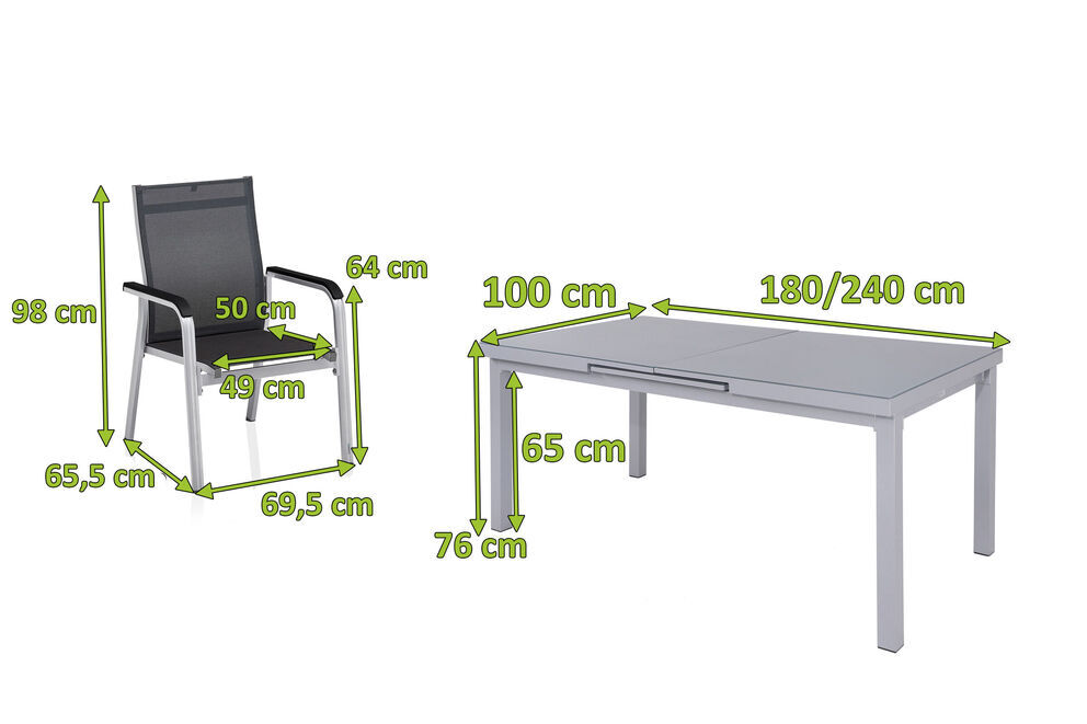 1x OUTFLEXX Ausziehtisch, silber/grau, ca. 180/240 x 100 cm