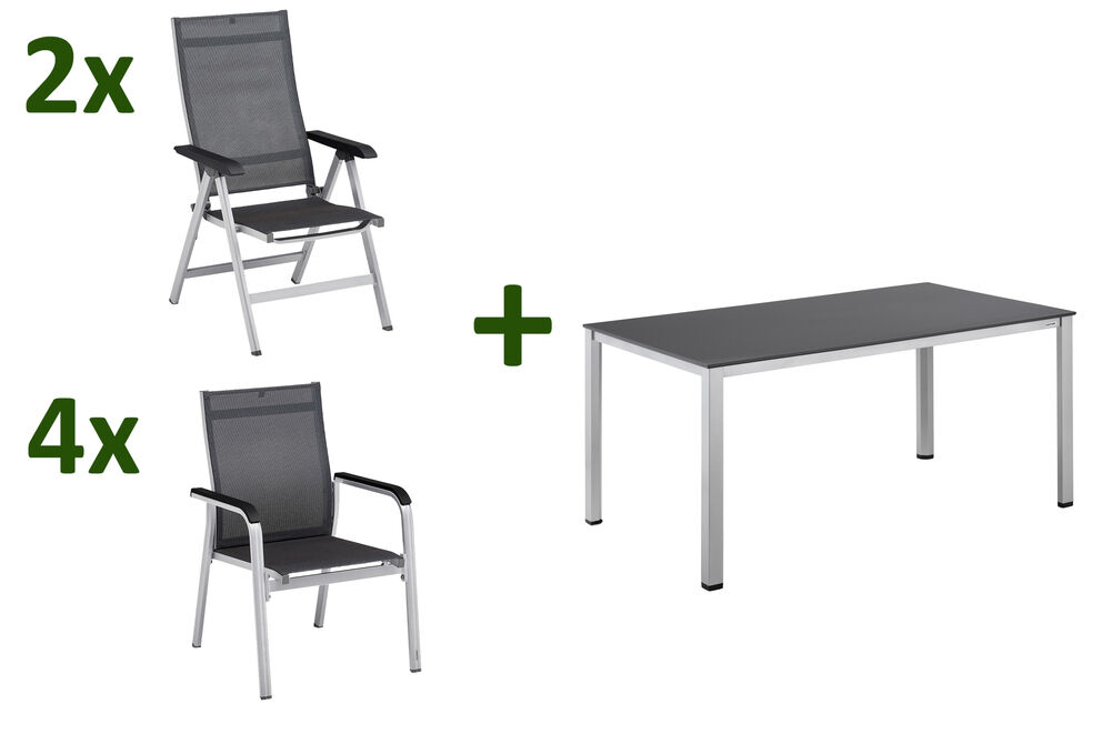 1x KETTLER Kettalux-Plus Dining-Tisch, silber/anthrazit, ca. 160 x 95 cm (0301821-0000)
