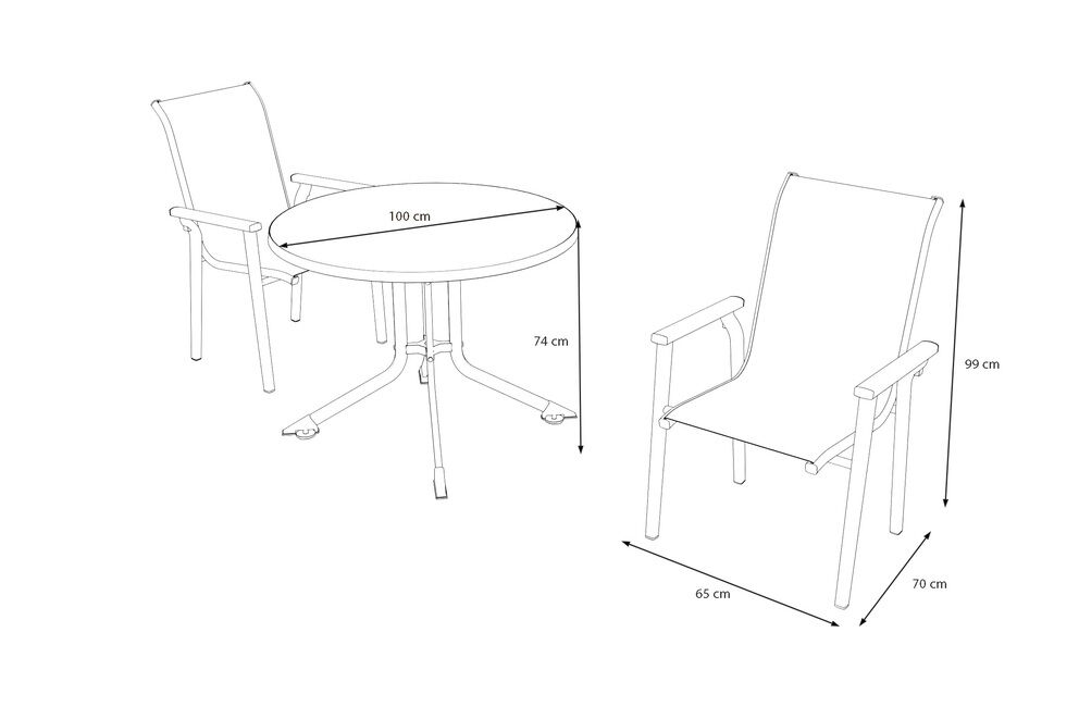 Die Sessel werden vollständig montiert geliefert und können direkt verwendet werden. Mit ihrem geringen Gewicht – ca. 3,75 kg pro Sessel – sind sie leicht zu handhaben und flexibel im Außenbereich einsetzbar. Auch der Tisch lässt sich mühelos aufstellen und bietet mit ca. 74 cm Höhe die ideale Basis für entspannte Mahlzeiten im Freien. |