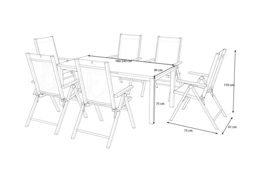 Die sechs klappbaren KETTLER BasicPlus Pro Stühle ergänzen den Tisch optimal. Das leichte Aluminiumgestell und das strapazierfähige Outdoorgewebe stehen für wetterfesten Komfort und angenehmes Sitzen auch über längere Zeiträume. Die anthrazitfarbene Bespannung passt farblich ideal zum Tisch und betont die moderne Gesamtoptik. Dank des Klappmechanismus lassen sich die Stühle platzsparend verstauen, wenn sie nicht benötigt werden – ein praktischer Vorteil bei begrenztem Terrassenraum oder zur Wintereinlagerung. Mit einer Belastbarkeit von ca. 120 kg, einer Sitzbreite von ca. 51 cm und einer Sitzhöhe von ca. 47 cm bieten die Stühle auch ergonomisch hervorragende Voraussetzungen für erholsame Stunden im Freien. Zusätzlich sind Armlehnen und Rückenrahmen ebenfalls aus Aluminium gefertigt, wodurch eine durchgehend homogene Optik entsteht.