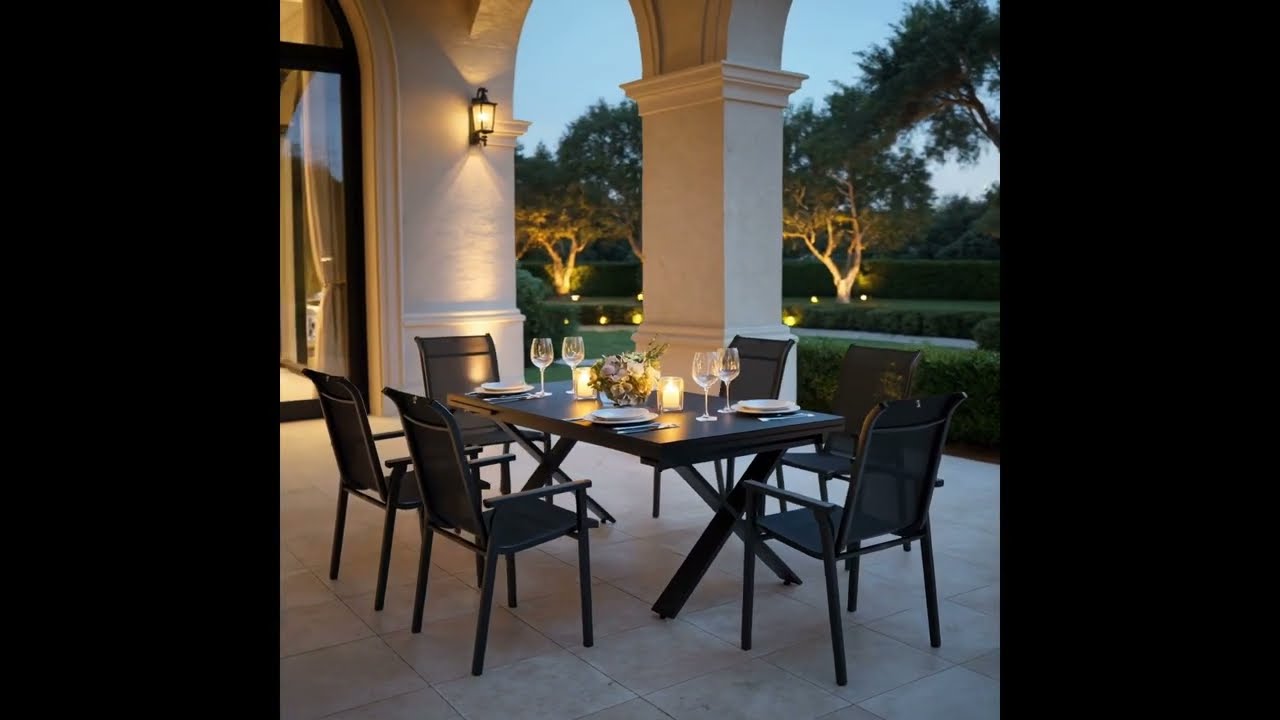 Die Essgruppe bietet Ihnen nicht nur funktionale Vorteile, sondern wird zum stilvollen Mittelpunkt Ihres Außenbereichs. Ob gemütliches Frühstück im Freien, entspanntes Sonnenbaden oder große Gartenfeste – diese Kombination aus Ausziehtisch und sechs Stapelsesseln schafft den idealen Rahmen für gesellige Stunden. Durch ihre harmonische Formensprache in modernem Anthrazit fügt sie sich nahtlos in unterschiedlichste Gartenstile ein, von puristisch-modern bis klassisch-elegant.