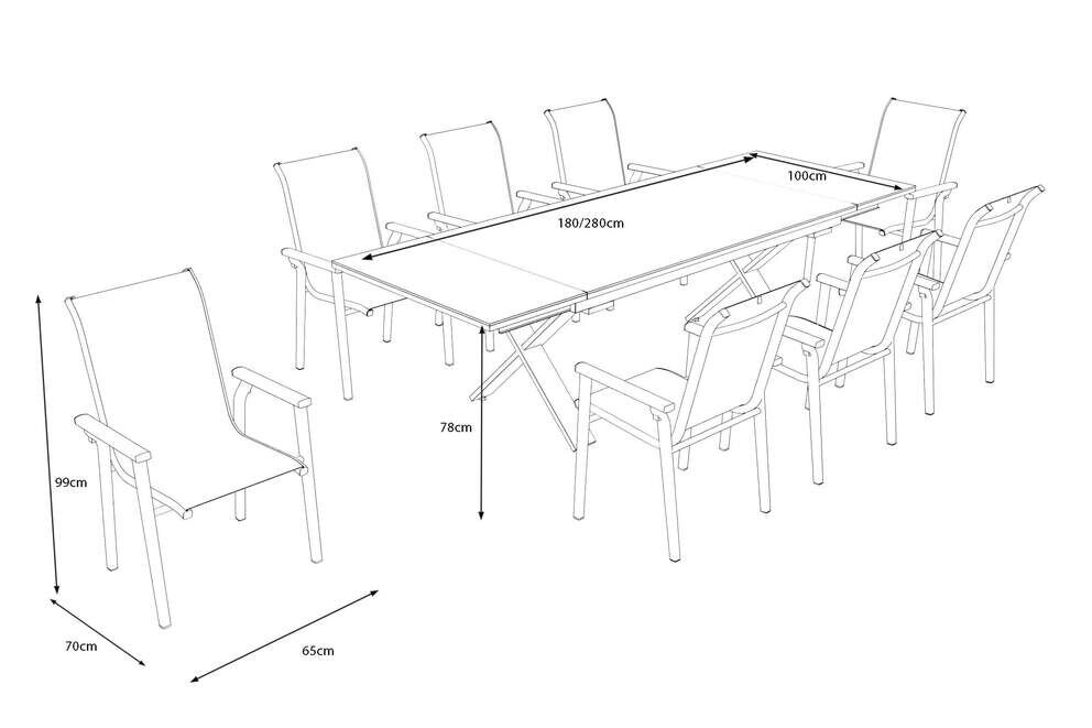 Mit der exquisiten KETTLER BasicPlus Pro Garten-Essgruppe verwandeln Sie Ihre Terrasse, Ihren Balkon oder Ihren Garten in einen einladenden Ort für unvergessliche Momente im Freien. Die Kombination aus einem großzügigen OUTFLEXX Ausziehtisch und acht hochwertigen KETTLER Stapelsesseln vereint modernes Design, überzeugende Materialqualität und außergewöhnlichen Komfort. Diese Essgruppe ist die perfekte Wahl für alle, die Wert auf Stil, Funktionalität und langlebige Outdoor-Möbel legen.