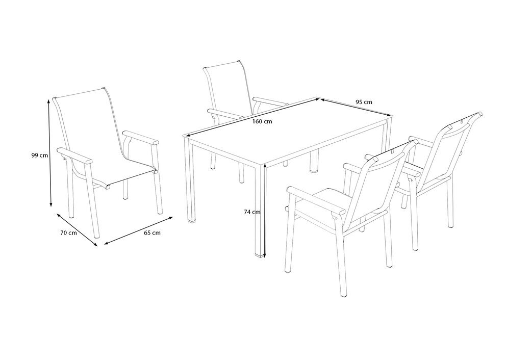 Die KETTLER BasicPlus Pro Garten-Essgruppe verbindet hochwertiges Design mit überzeugender Alltagstauglichkeit – und schafft damit einen stilvollen Mittelpunkt für Ihren Außenbereich. Mit ihrer modernen Kombination aus silberfarbenem Aluminium und anthrazitfarbenem Outdoorgewebe fügt sich die Essgruppe harmonisch in zahlreiche Terrassen- und Gartengestaltungen ein. Der ca. 160 x 95 cm große Tisch bietet großzügige Abstellfläche für entspanntes Essen im Freien, während die vier exklusiven Stapelsessel der Serie BasicPlus Pro hohen Sitzkomfort und praktische Funktionalität vereinen.