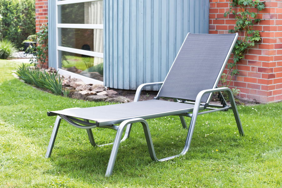 Mit der Relaxliege aus der BasicPlus Serie bequem durch den Sommer. Das solide und formschöne Gestell besteht aus edlem, silberfarbenem Aluminium. Die anthrazitfarbene Sitz-/Liegefläche wird aus hochwertigem Outdoorgewebe gefertigt. Die Sitzfläche nimmt kein Wasser auf und trocknet schnell, so können Sie auch nach einem kleinen Regenschauer rasch wieder Platz nehmen. Das luftige Gewebe ist formstabil und trotzdem sehr bequem und zusätzlich UV- und sonnenölbeständig - insgesamt also der perfekte Begleiter in Ihrem Garten. Dank der leichten Materialien lässt sich die Liege leicht handhaben - wenn sie nicht benötigt wird können Sie sie unkompliziert umstellen.