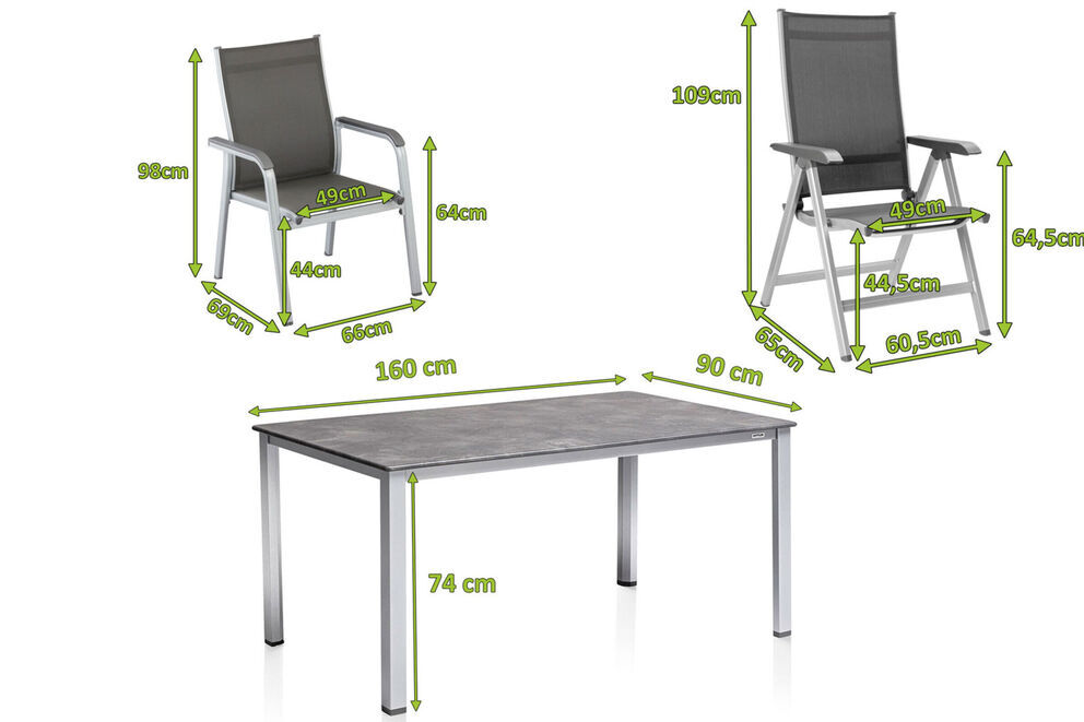 1x KETTLER Cubic Esstisch, silber/anthrazit, Aluminium, ca. 160x90x74 cm (0301821-0100)