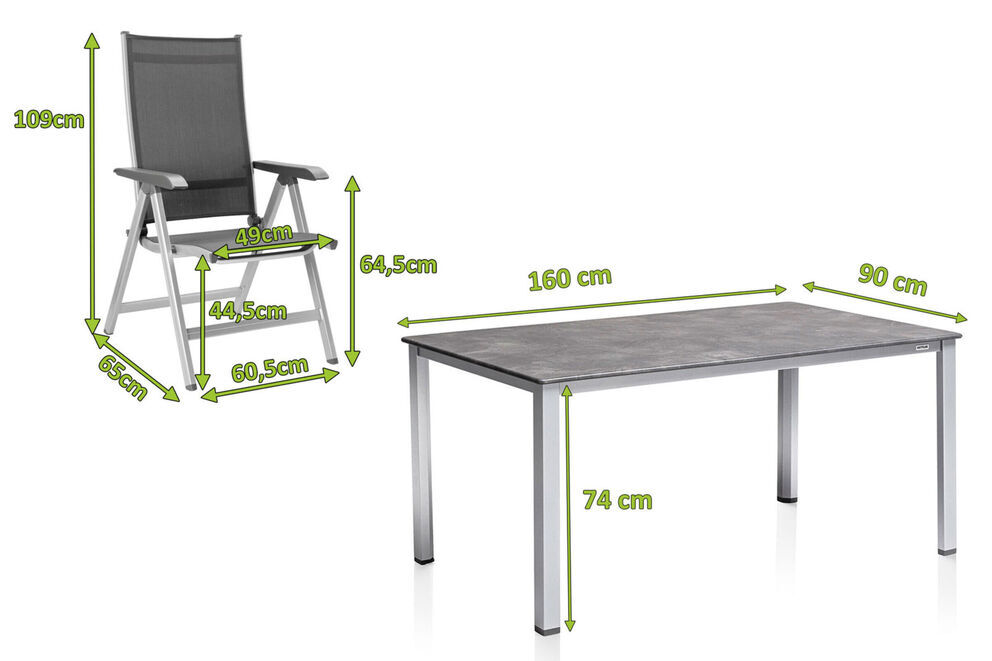 1x KETTLER Cubic Esstisch, silber/anthrazit, Aluminium, ca. 160x90x74 cm (0301821-0100)