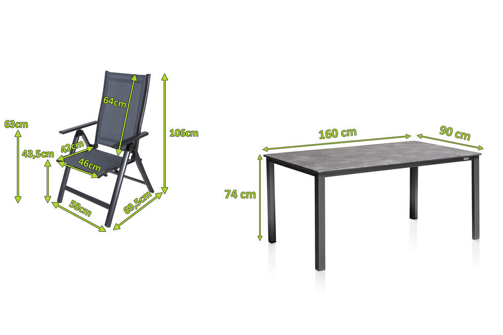 Der rechteckige Tisch für 4-6 Personen bietet Platz für eine ganze Familie. Die anthrazitfarbene Tischplatte besteht aus hochwertig verarbeitetem Kettalit und wird von einem soliden Gestell aus Aluminium in anthrazit getragen. Die positiven Eigenschaften von Aluminium sind zahlreich: Es ist leicht, wetterfest, stabil und elegant. In Kombination mit der Stabilität und der kratzfesten Oberfläche der Kettalit Tischplatte wird aus diesem Möbelstück das Highlight für Ihren Garten. Freuen Sie sich nach einem anstrengenden Tag auf Ihren bequemen Klappstühle von OUTFLEXX®, der Ihnen dabei hilft abzuschalten und den Alltag auch einfach mal Alltag sein zu lassen. Ihr Komfort steht an erster Stelle und mit diesem Sessel finden Sie immer die gemütlichste Position. Die großzügige Rückenlehne lässt sich ganz leicht 7-fach verstellen und ermöglicht Ihnen somit ein individuelles Sitzgefühl und vollste Entschleunigung. So können Sie spielend von einer Liege- in eine Sitzposition und wieder zurück wechseln, ganz nach Bedarf. Diese Flexibilität gepaart mit dem gehobenen Sitzgenuss machen den leichten Klappsessel zum perfekten Begleiter. Für das schicke anthrazitfarbene Gestell kommt korrosionsbeständiges Aluminium mit Pulverbeschichtung zum Einsatz. Bespannt wird das solide Gestell mit Textilene im passenden Grauton und sorgt für ein herrlich luftiges Sitzgefühl, das seinesgleichen sucht. Die zweigeteilte Sitz- und Rückenfläche ist darüber hinaus unglaublich verliert nie ihre Form. Die Gesamtmaße des Sessels liegen bei ca. 69,5 x 58 x 106 cm. Mit einer Sitzbreite von ca. 46 cm und einer Sitztiefe von ca. 42 cm sitzen Sie stets komfortabel. Bei einer Sitzhöhe von ca. 43,5 cm passt der Sessel auch unter eine Vielzahl von Tischen und bietet Ihnen genügend Beinfreiheit. Erhöhten Komfort schenken Ihnen die schlichten und zugleich markanten Armlehnen aus Aluminium, die auch optisch überzeugen. Dank der hochwertigen Materialien und erstklassigen Verarbeitung ist der ca. 9 kg leichte Sessel bis zu ca. 120 kg belastbar. Sie können den Klappsessel somit auch ganz nach Bedarf an Ihren Lieblingsplätzen aufstellen, ihn nach der Sonne ausrichten oder auch, wenn nötig, schnell unters Dach oder in den Schatten bringen. Mit Hilfe der Klappfunktion lässt sich der Sessel zur Aufbewahrung auch einfach zusammenklappen und bis zum nächsten Einsatz in Ihrem Gartenhäuschen oder der Garage verwahren. Mit den hochwertigen Materialien trotzen Sie den Elementen. Sie machen Ihren neuen Sessel nicht nur äußerst witterungsbeständig, sondern auch pflegeleicht. Die Pulverbeschichtung des Aluminiumgestells verleiht ihm zudem besondere Stoß-, Schlag- und Kratzfestigkeit. Das luftige Outdoorgewebe der Rücken- und Sitzfläche (Textilene) wird aus 100 % Polyester gefertigt und ist besonders UV-beständig und reißfest. Das Material trocknet zudem sehr schnell, weshalb auch Regenschauer Ihr Gartenvergnügen nur kurz unterbrechen. Aufgrund der pflegeleichten Eigenschaften der Materialien lassen sich oberflächliche Verschmutzungen auch direkt mit etwas Wasser entfernen. Zusätzliche Fußkappen vermeiden unschöne Kratzer auf Ihrer Terrasse und bieten zugleich Schutz für das Gestell.