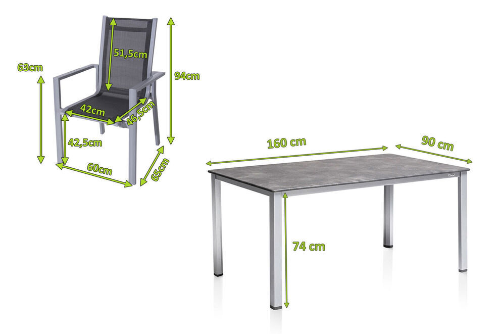 Leicht und gleichzeitig unheimlich stark: das sind die modernen Stapelsessel von OUTFLEXX®. Für das schicke und solide Gestell kommt korrosionsbeständiges Aluminium mit Pulverbeschichtung im glanzvollen Silberton zum Einsatz. Bespannt wird das Gestell mit Textilene im passenden Grauton und es sorgt für ein herrlich luftiges Sitzgefühl, das seinesgleichen sucht. Die durchgehende Sitz- und Rückenfläche ist darüber hinaus unglaublich verliert nie ihre Form. Die Gesamtmaße des Sessels liegen bei ca. 65 x 60 x 94 cm. Mit einer Sitzbreite von ca. 42 cm und einer Sitztiefe von ca. 46,5 cm sitzen Sie stets komfortabel. Bei einer Sitzhöhe von ca. 42,5 cm passt der Sessel auch unter eine Vielzahl von Tischen und bietet Ihnen genügend Beinfreiheit. Erhöhten Komfort schenken Ihnen die schlichten und zugleich markanten Armlehnen aus Aluminium, die auch optisch zu überzeugen wissen. Dank der hochwertigen Materialien und erstklassigen Verarbeitung ist der ca. 3,3 kg leichte Sessel bis zu ca. 120 kg belastbar. Sie können das Federgewicht somit auch ganz nach Bedarf an Ihren Lieblingsplätzen aufstellen oder bei Bedarf in den Schatten bringen. Zur Aufbewahrung stapeln Sie den Sessel einfach platzsparend in der Garage oder im Gartenhäuschen bis zu seinem nächsten Einsatz.