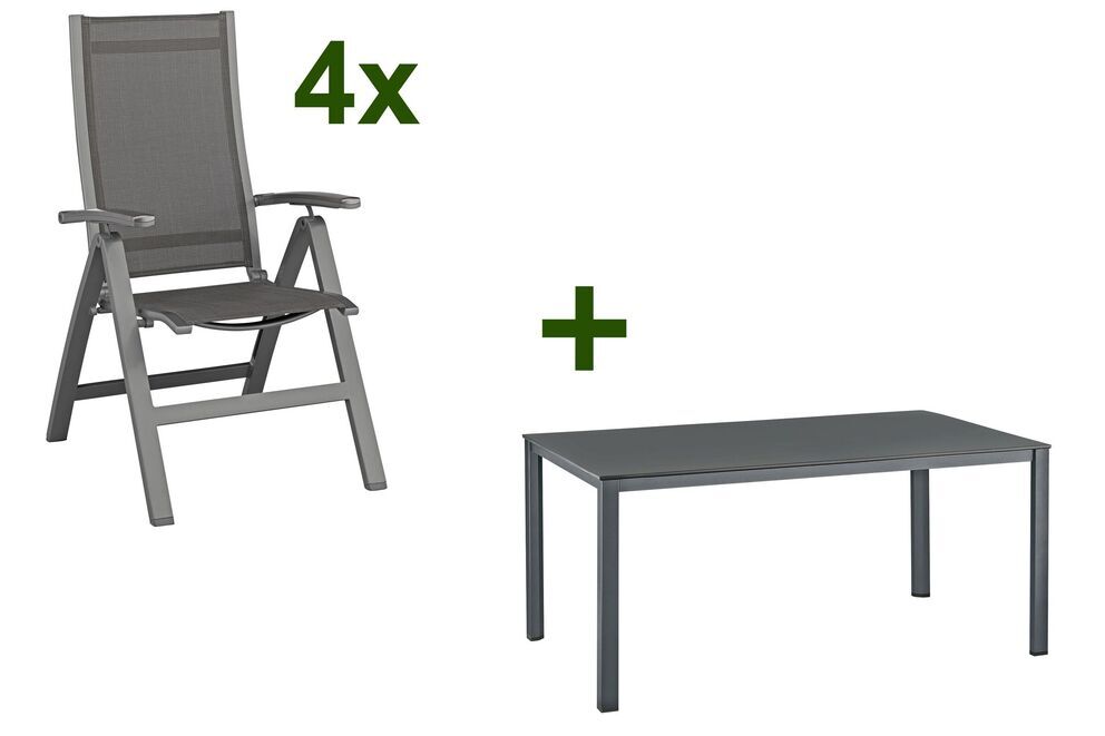 Das zeitlos klassische Design in der edlen Farbe anthrazit macht die Garten-Essgruppe auch optisch zum reinen Vergnügen.