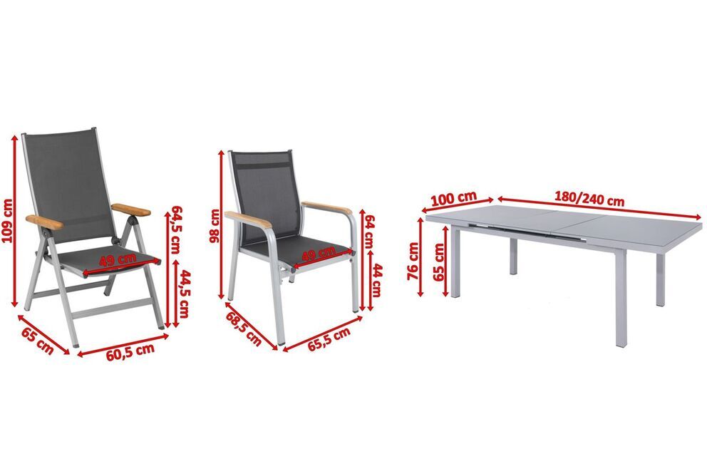 1x OUTFLEXX® Premium Ausziehtisch silber/grau, ca. 180/240 x 100 x 76 cm