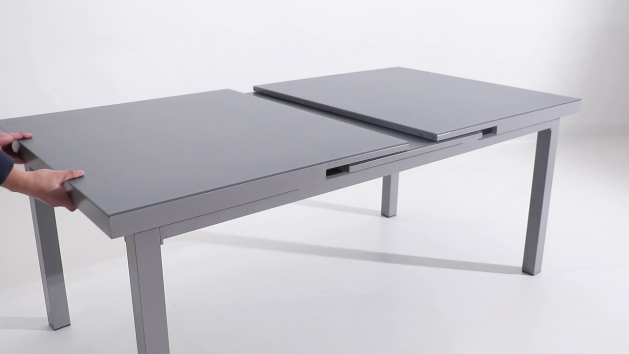 Um den Tisch auszuziehen müssen zunächst die Hebel an den Längsunterseiten des Tisches gelöst werden (diese verhindern das Auseinanderrutschen der Tischplatten im nicht ausgezogenem Zustand). Die Platten werden anschließend auseinandergezogen. Sobald die sichtbar werdende Mittelplatte auf derselben Höhe wie die Platten ist hört man ein Klicken. Ist die Mittelplatte eingerastet die Platten wieder zurückschieben, bis die Splinte in den dafür vorgesehenen Vorrichtungen einrasten.