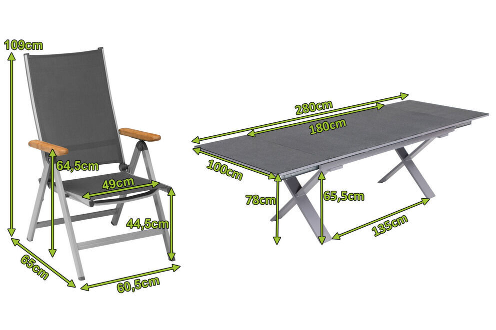 1x OUTFLEXX® Ausziehtisch in silber/grau, ca. 180/280 x 100 x 78 cm