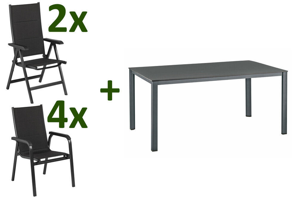 Mit den passenden Stapel- und Klappstuhln aus der Basic Plus Padded Serie bequem durch den Sommer. Mittels Rasterschiene lassen sich die Multipos leicht in 4 verschiedene Positionen bringen - so wird der Komfort eines Liegestuhls direkt integriert. Das solide und formschöne Gestell der Stühle besteht aus edlem, anthrazitfarbenen Aluminium. Das witterungsbeständige Material ist durch seine Flexibilität und seine zusätzliche Polsterung (padded) auch ohne Auflagen sehr bequem. Das formstabile, anthrazite Gewebe nimmt kein Wasser auf, ist atmungsaktiv, UV-Beständig und trocknet nach einem kurzen Schauer sehr schnell - insgesamt also der perfekte Begleiter in Ihrem Garten. Dank der leichten Materialien und des Klappmechanismus bzw. der Stapelbarkeit lassen sich die Stühle leicht handhaben - wenn diese nicht benötigt werden können Sie diese platzsparend verstauen.