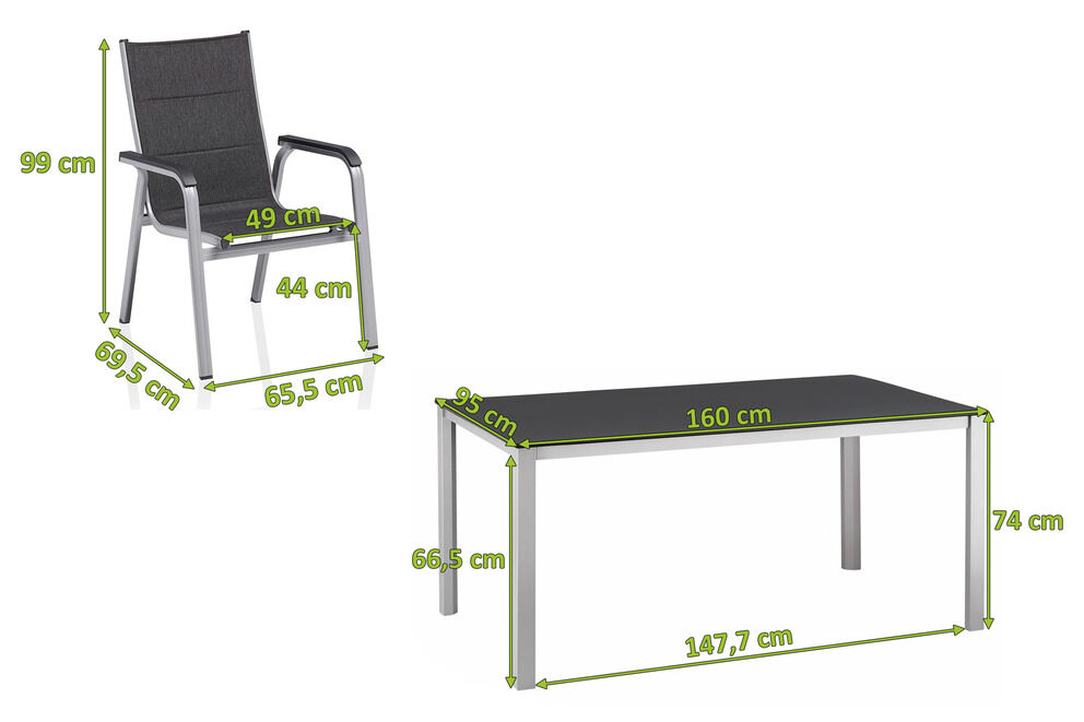 1x Dining-Tisch ca. 160x95cm silber/anthrazit (0301821-0000)
